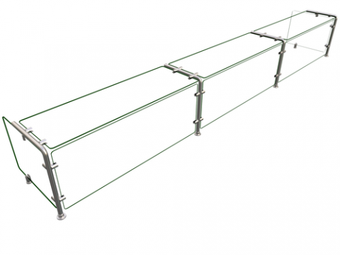 Flav-R-Shield® EP11 Food Shield, full service, 120"W x 18"D x 18"H, 1/4" thick heat tempered glass construction throughout with 3/4" radius corners and polished edges, glass top shelf, front and side panels, 1" OD brushed 304 stainless steel posts, NSF component, Made in the USA