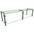 Flav-R-Shield® EP12 Food Shield, full service pass-over, 2 Bays 60"W x 18"D x 18"H, 1/4" thick heat tempered glass construction throughout with 3/4" radius corners and polished edges, glass top shelf, front and side panels with back posts, 1" OD brushed 304 stainless steel posts, NSF component, Made in the USA