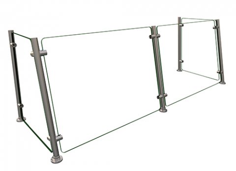 Flav-R-Shield® EP15 Food Shield, full service pass-over, 2 Bays 60"W x 18"D x 22"H, heat tempered glass construction throughout with 3/4" radius corners and polished edges, 1/4" thick glass front and side panels with front and back posts, 1" OD brushed 304 stainless steel posts, front posts tilted back to an 80 degree angle, NSF component, Made in the USA