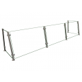 Flav-R-Shield® EP15 Food Shield, full service pass-over,3 Bays 96"W x 18"D x 22"H, heat tempered glass construction throughout with 3/4" radius corners and polished edges, 1/4" thick glass front and side panels with front and back posts, 1" OD brushed 304 stainless steel posts, front posts tilted back to an 80 degree angle, NSF component, Made in the USA
