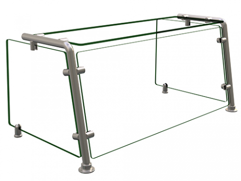 Flav-R-Shield® EP21 Food Shield, full service pass-over, 1 Bay 36"W x 18"D x 18"H, 1/4" thick heat tempered glass construction throughout with 3/4" radius corners and polished edges, glass top shelf, front and side panels, 1" OD brushed 304 stainless steel posts, front posts tilted back to an 80 degree angle, NSF component, Made in the USA