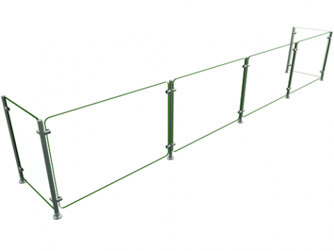 Flav-R-Shield® EP5 Food Shield, full service, 144"W x 18"D x 25"H, heat tempered glass construction throughout with 3/4" radius corners and polished edges, 1/4" thick glass front and side panels, 1" OD brushed 304 stainless steel posts, NSF component, Made in the USA