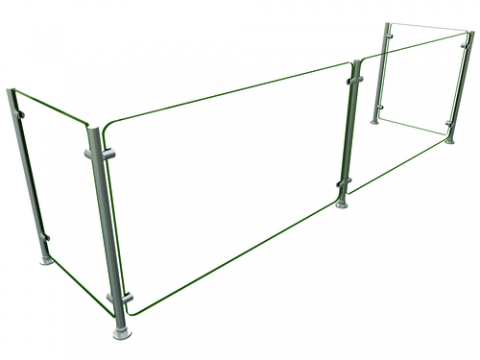 Flav-R-Shield® EP5 Food Shield, full service, 84"W x 18"D x 25"H, heat tempered glass construction throughout with 3/4" radius corners and polished edges, 1/4" thick glass front and side panels, 1" OD brushed 304 stainless steel posts, NSF component, Made in the USA