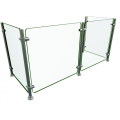 Flav-R-Shield® EP5-RING Food Shield, full service pass-over, 2 Bays 48"W x 18"D x 25"H, heat tempered glass construction throughout with 3/4" radius corners and polished edges, 1/4" thick glass front and side panels, 1" OD brushed 304 stainless steel posts, adjustable ring brackets with locking points every 15 degrees, 2 x 18" deep glass end panels, NSF component, Made in the USA