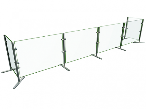 Flav-R-Shield® EP6 Food Shield, portable, 4 Bays 132"W x 18"D x 27.5"H, heat tempered glass construction throughout with square corners and polished edges, 1/4" thick glass front and side panels, 1" OD brushed 304 stainless steel posts, NSF component, Made in the USA