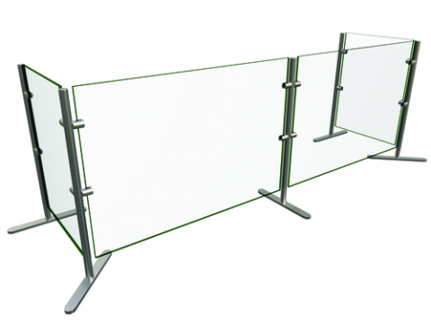 Flav-R-Shield® EP6 Food Shield, portable, 2 Bays 72"W x 18"D x 27.5"H, heat tempered glass construction throughout with square corners and polished edges, 1/4" thick glass front and side panels, 1" OD brushed 304 stainless steel posts, NSF component, Made in the USA