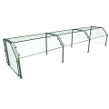 Flav-R-Shield® ES31 Food Shield, self service, 3 Bays 108"W x 18"D x 22"H, heat tempered glass construction throughout with 3/4" radius corners and polished edges, 3/8" thick glass top shelf, glass front and side panels, with back posts, 1" OD brushed 304 stainless steel posts, NSF component, Made in the USA