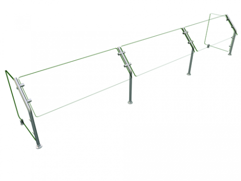 Flav-R-Shield® ES31 Food Shield, self service, 120"W x 18"D x 22"H, heat tempered glass construction throughout with 3/4" radius corners and polished edges, 3/8" thick glass top shelf, 1/4" thick glass front and side panels, 1" OD brushed 304 stainless steel posts, NSF component, Made in the USA