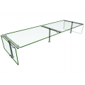 Flav-R-Shield® ES53 Food Shield, stationary double-sided self service, 2 Bays 60"W x 20"D x adjustable up to 54"H, heat tempered glass construction throughout with 3/4" radius corners and polished edges, 3/8" thick glass top shelf and end panels, 1" OD brushed 304 stainless steel posts, NSF component, Made in the USA