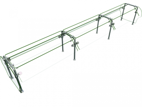 Flav-R-Shield® ES92 Food Shield, double-sided self-service, 144"W x 38"D x 23"H, 3/8" thick heat tempered glass construction throughout with 3/4" radius corners and polished edges, glass top shelf, adjustable front panels, side panels, 1" OD brushed 304 stainless steel posts, NSF component, Made in the USA