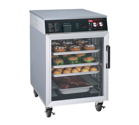 Flav-R-Savor® Holding Cabinet, Mobile Heated, thermostatically-controlled heat, electrical components, water reservoir, insulated, (1) door, digital temperature readout, adjustable humidity & temperature, (7) adjustable removable slides for 18" x 26" or 12" x 20" pans, slides on 1-1/2" centers, large swivel casters with wheel locks, 1697 watts, NSF, CE, cULus, Made in USA