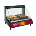 Glo-Ray® Designer Heated Display Case, tempered curved glass, countertop design, (2) pan single shelf, incandescent lighting, stainless steel interior, 4" adjustable counter legs, 780 watts, cULus, UL EPH Classified. Made in USA