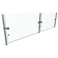 Flav-R-Shield® ORBIT100 Food Shield, full service pass-over, 2 Bays 84"W x 2"D x 18"H, heat tempered glass construction throughout with 3/4" radius corners and polished edges, adjustable 3/8" thick front panel with roatating face panel and additional circular openings for optimum high adjustment, 1" OD brushed 304 stainless steel posts with mounting feet, NSF component, Made in the USA