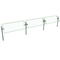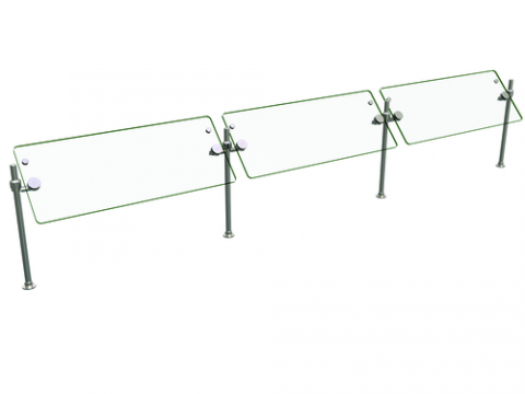 Flav-R-Shield® ORBIT360 Food Shield, self service, 3 Bays 108"W x adjustable 2-14"D x 23"H, heat tempered glass construction throughout with 3/4" radius corners and polished edges, adjustable 3/8" thick front panel with roatating face panel and additional circular openings for optimum high adjustment, 1" OD brushed 304 stainless steel posts with mounting feet, NSF component, Made in the USA
