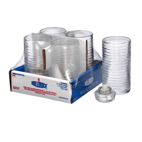 Cash & Carry Typhoon Candle Lamp Base, 2-5/8" dia. x 5"H, round, mid-size, spun glass design, clear, with HD12 Liquid Votive™ fuel cells (4 each per pack)