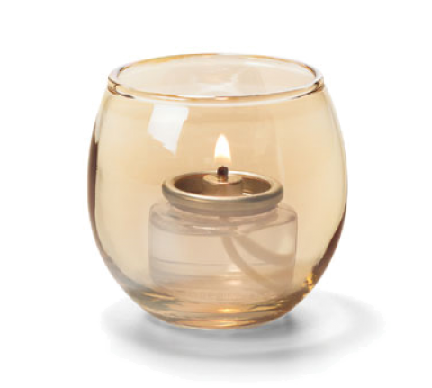 Tealight Lamp, 2-3/8"H x 2-5/8" dia., bubble style, glass, accommodates Hollowick's HD8 disposable fuel cell, gold lustre