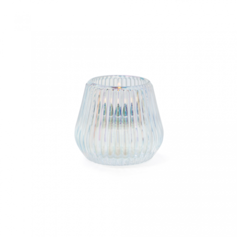 Tealight Lamp, 3" dia. x 2.5"H, teardrop, glass, clear, Hollowick (minimum = case quantity) (NON STOCK item)