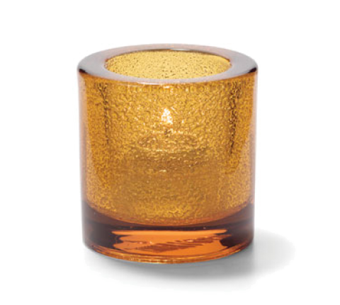 Tealight Lamp, 2-3/4" dia. x 2-7/8"H, round, thick glass, accommodates Hollowick's HD8 disposable fuel cell, amber jewel