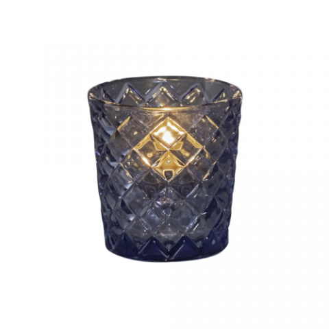 Tealight Lamp, 2.5" dia. x 2.5"H, criss cross, glass, blue (minimum = case quantity) (NON STOCK item)