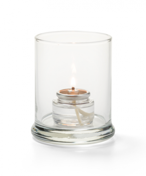 Votive Lamp, 3-5/8"H x 3" dia., accommodates Hollowick's HD8, HD12 or HD15 disposable fuel cell, cylinder style, glass, clear