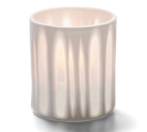 Boutique™ Votive, 3-1/8"H x 2-7/8" dia., stripes, accommodates Hollowick's HD8, HD12 or HD15 fuel cell, porcelain, white