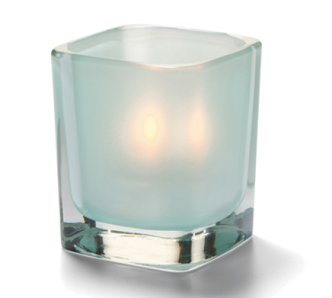 Tetra™ Votive, 3-1/2"H x 3" sq., accommodates Hollowick's HD8, HD12 or HD15 fuel cell, glass, satin seafoam
