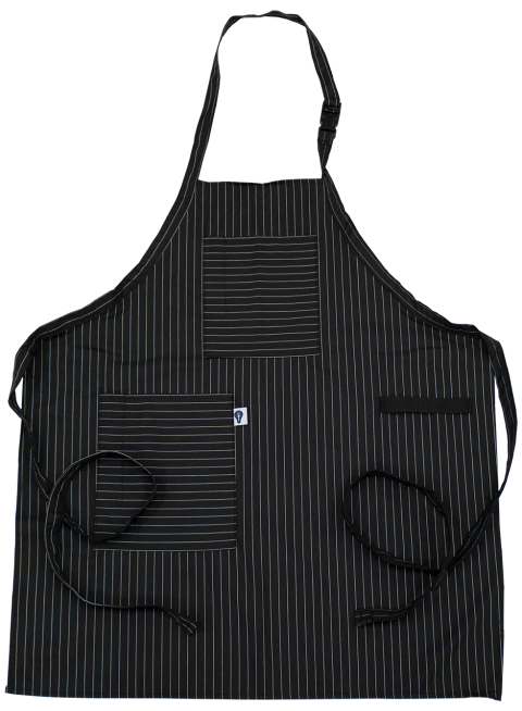 Bib Apron, 31"L x 27"W, (2) pocket, utility strap, artisan pinstripe, Made in USA