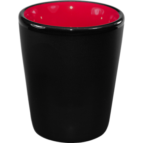 Shot Cup, 1-1/2 oz., 2" dia. x 2-1/4"H, round, without handle, fully vitrified, microwave & dishwasher safe, lead free, fully vitrified, stoneware, black matte exterior, red interior, Hilo®