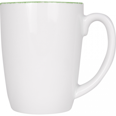 Provincial™ Mug, 3-1/4"D x 4-1/8"H, 11 oz., round, with handle, porcelain with underglaze decoration, European white with green
