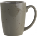 Mug, 3-1/4"D x 4-1/8"H, 11 oz., Round with Handle, Stoneware Fully Vitrified with hand painted reactive glaze finish, Green Smoke with Dark Brown Trim and Speckles, Splash™