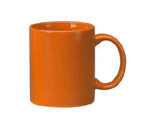 Mug, 11 oz., 3-1/4" dia. x 3-3/4"H, round, with C-handle, fully vitrified, microwave & dishwasher safe, lead free, ceramic, orange, Cancun™
