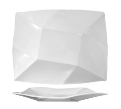 Plate, 10-1/2"W x 8-1/4"D x 1-5/8"H, square, rolled edge, fully vitrified, microwave & dishwasher safe, lead free, wave design, porcelain, Bright White, Aspekt™