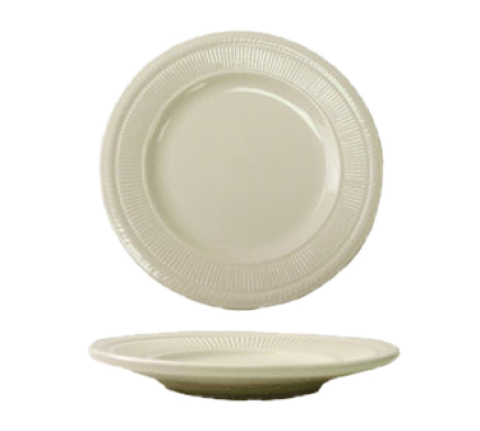 Plate, 11-1/8" dia., round, embossed, lined edge, microwave & dishwasher safe, lead free, ceramic, American White, Athena™