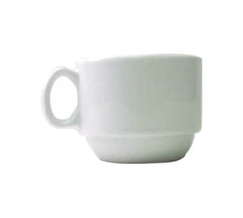 Cup, 8 oz., 3-5/8" dia. x 2-1/2" H, round, with handle, stackable, rolled edge, fully vitrified, microwave & dishwasher safe, lead free, porcelain, Bright White, Bristolâ„¢