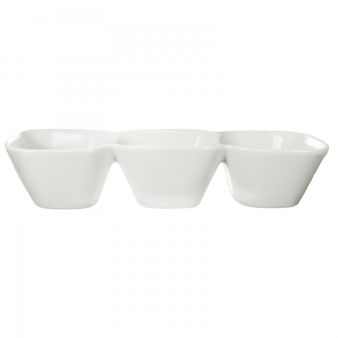 Compartment Bowl, 9-1/2"W x 3-1/4"D x 1-5/8"H , (3) 3-1/2 oz. compartment wells, square, rolled edge, fully vitrified, microwave & dishwasher safe, lead free, porcelain, Bright White, Bristolâ„¢