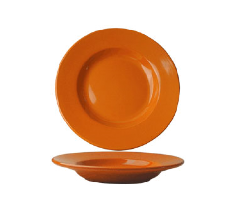 Pasta Bowl, 18 oz., 12" dia. x 1-3/4" H, round, rolled edge, microwave & dishwasher safe, lead free, ceramic, orange, Cancun™