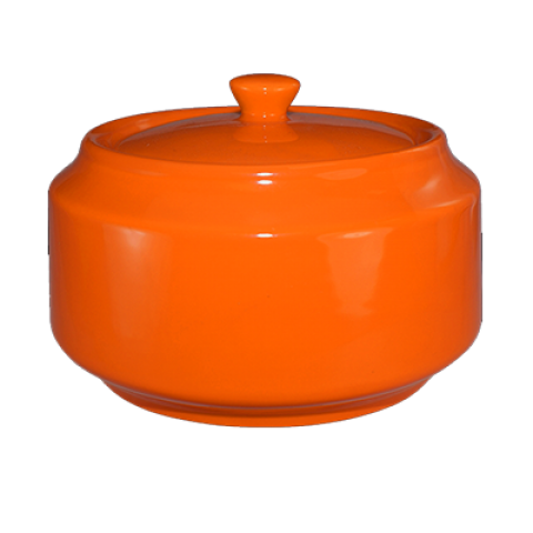 Sugar Bowl, 13 oz., 4-1/2" dia. x 3-3/8" H with lid, round, rolled edge, microwave & dishwasher safe, lead free, ceramic, orange, Cancun™