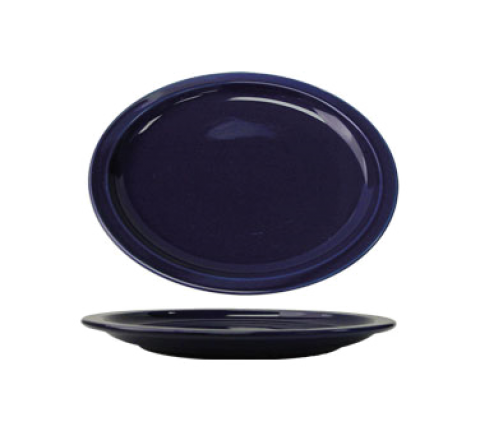 Platter, 11-1/2" x 9-1/4", oval, narrow rim, rolled edge, microwave & dishwasher safe, lead free, ceramic, cobalt blue, Cancun™