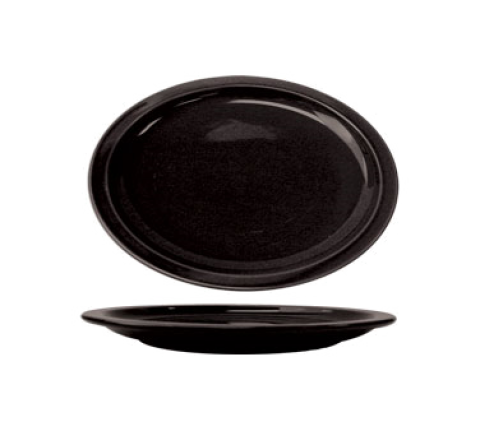 Platter, 13-1/4" x 10-3/8", oval, narrow rim, rolled edge, microwave & dishwasher safe, lead free, ceramic, black, Cancun™
