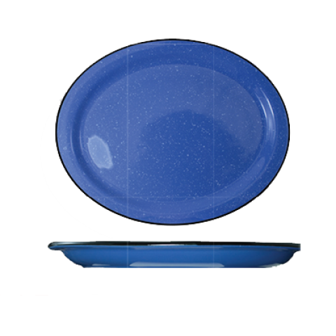 Platter, 11-1/2" x 9-1/4", oval, narrow rim, rolled edge, fully vitrified, microwave & dishwasher safe, stoneware-ceramic, speckle ocean blue, Campfire™ (Patent No. D803003/D867072)
