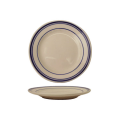 Plate, 10-1/4" dia., round, rolled edge, microwave & dishwasher safe, lead free, ceramic, American White with blue band, Catania™