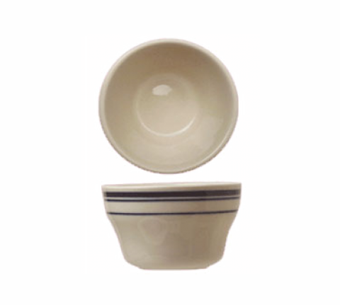 Bouillon, 7-1/4 oz., 4" dia. x 2-3/8"H, round, rolled edge, microwave & dishwasher safe, lead free, ceramic, American White with blue band, Catania™