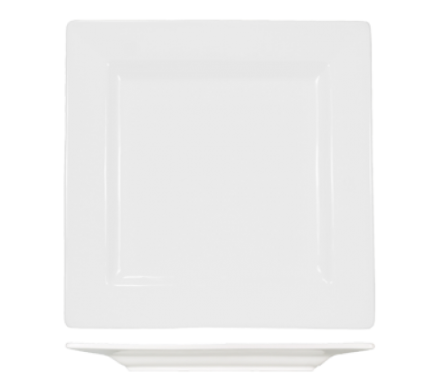Plate, 10-3/4"W x 10-3/4"D x 1" H, square, wide rim, rolled edge, fully vitrified, microwave & dishwasher safe, lead free, porcelain, Bright White, Elite™