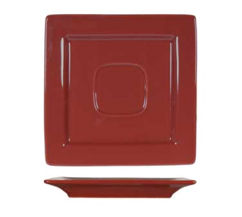 Saucer, 5-7/8" x 5-7/8", square, wide rim, rolled edge, with well ring, fully vitrified, microwave & dishwasher safe, lead free, stoneware, rhubarb, Elite Harvestâ„¢ (for EL-1-RH)