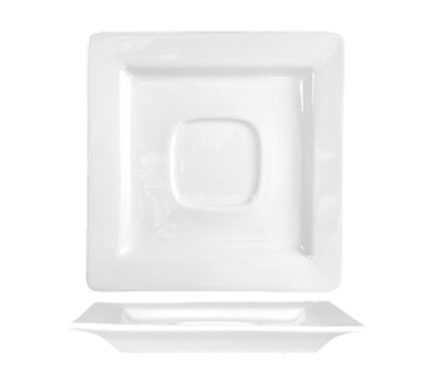 Saucer, 5-7/8" x 5-7/8", square, wide rim, rolled edge, with well ring, fully vitrified, microwave & dishwasher safe, lead free, porcelain, Bright White, Elite™ (for EL-1 & EL-30)