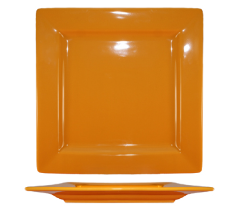 Plate, 7-1/4"W x 7-1/4"D x 7/8"H, square, wide rim, rolled edge, fully vitrified, microwave & dishwasher safe, lead free, stoneware, butternut, Elite Harvestâ„¢