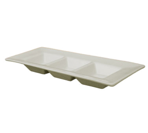 3-Well Sauce Dish, 10-1/4" x 4-1/8", (3) 1 oz.-compartments, rectangular, fully vitrified, microwave & dishwasher safe, lead free, porcelain, Bright White