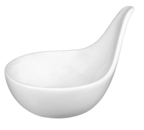 Sampling Bowl, 1-3/4 oz., 3-1/2"L x 2-5/8"W x 2-1/2"H, round, with handle, fully vitrified, microwave & dishwasher safe, lead free, porcelain, Bright White