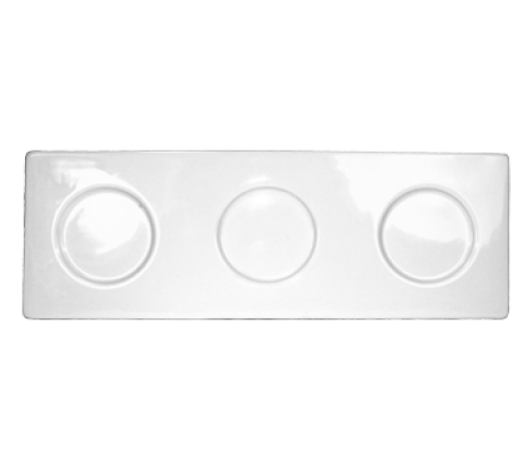 Dish Tray, 13-1/2" x 4-3/4", rectangular, with 3 wells, fully vitrified, microwave & dishwasher safe, lead free, porcelain, Bright White