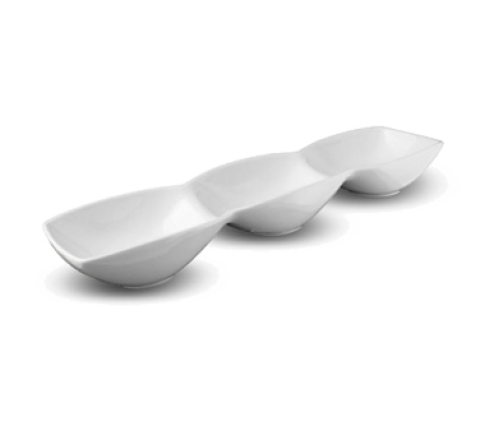 Bowl Platter, 14-1/2"W x 4"D x 1-3/4"H, (3) 5 oz.-compartment oval wells, rectangular, fully vitrified, microwave & dishwasher safe, lead free, porcelain, Bright White